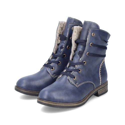 Rieker Damen Schnürstiefeletten 72229, Frauen Stiefeletten,halbstiefel,Kurzstiefel,uebergangsschuhe,uebergangsstiefel,warm,blau (14),40 EU / 6.5 UK