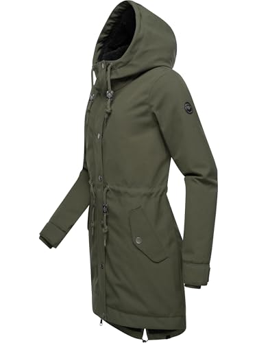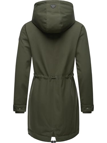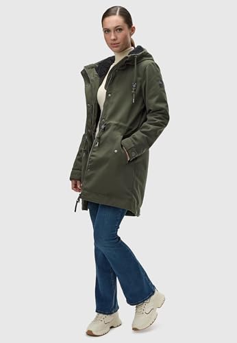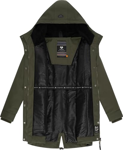 Ragwear Damen wasserdichter Mantel Lange warme Winterjacke mit Teddyfleece Kapuze Canny Canvas YOUMODO Dark Olive Gr. L