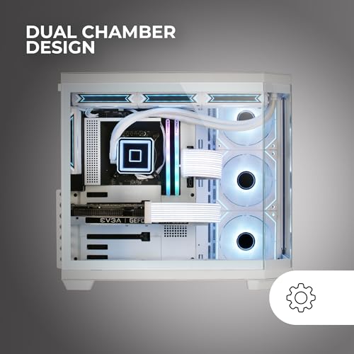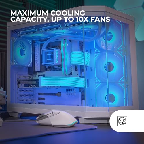 Mars Gaming MC-3TCORE, Custom ATX Gaming Gehäuse, Abnehmbares Fenster aus Dreifachglas, Dual-Kamera, Reverse Connector Backplane Kompatibler Semitower, Unterstützung für Flüssigkeitskühlung, Weiß