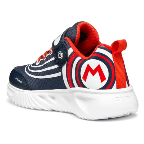 Sneaker GEOX J ASSISTER BOY Blinkschuh, Mädchen, Gr. 34, blau (navy, rot), Synthetik, Textil, Schuhe Sneaker, Sneaker, Klettschuh, Retro Sneaker mit Super Mario Motiv