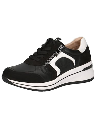 CAPRICE Comfort Damen Wedge Sneaker aus Leder mit Reißverschluss, Mehrfarbig (Black/White), 36 EU