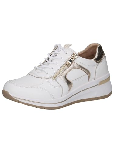CAPRICE Comfort Damen Wedge Sneaker aus Leder mit Reißverschluss, Weiß (White/Lt Gold), 37 EU
