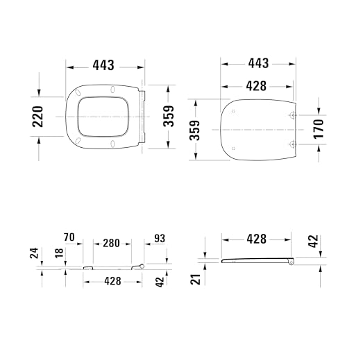Duravit WC-Sitz Univavo, WC-Sitz eckig, Klobrille mit doppelter Absenkautomatik, Toilettendeckel Quick Release für einfache Montage, Klodeckel EU, Urea-Duroplast, Edelstahlscharniere, Weiß 0024390000