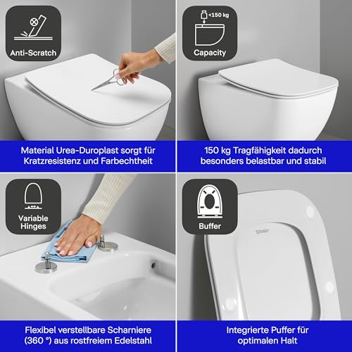 | lieferumfang | WC-Sitz, Absenkautomatik, Edelstahlscharniere, Weiß |