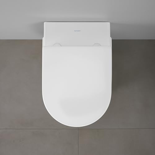 Duravit WC-Sitz Univavo, WC-Sitz D-shaped, Klobrille mit doppelter Absenkautomatik, Toilettendeckel Quick Release für einfache Montage, Klodeckel made in EU, Urea-Duroplast, Edelstahlscharniere, Weiß