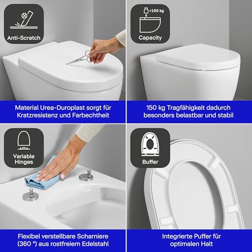 | lieferumfang | WC-Sitz, Absenkautomatik, Edelstahlscharniere, Weiß |
