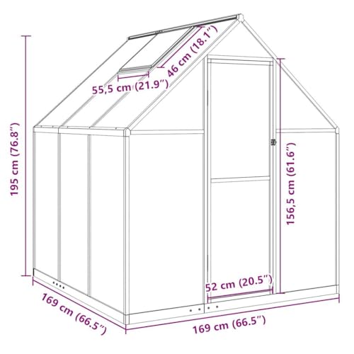 vidaXL Gewächshaus mit Fundamentrahmen Grün 169x169x195 cm Aluminimum Grün