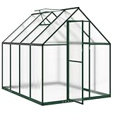vidaXL Gewächshaus mit Fundamentrahmen, Pflanzenhaus mit Dachrinnensystem Flügeltür, Treibhaus für Pflanzen, Frühbeet, Grün Aluminimum