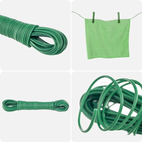 Kadax - Wäscheleine mit Kunststoffummantelung, Wäscheseil, 20 m, Grün