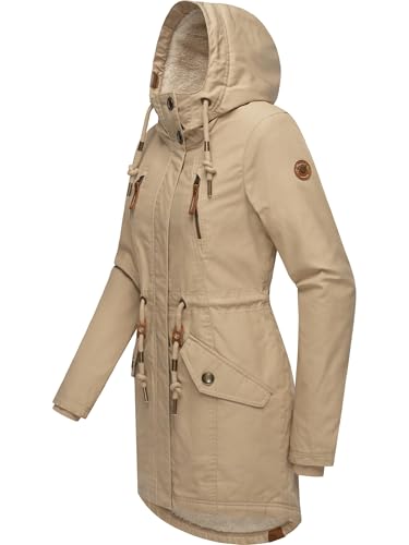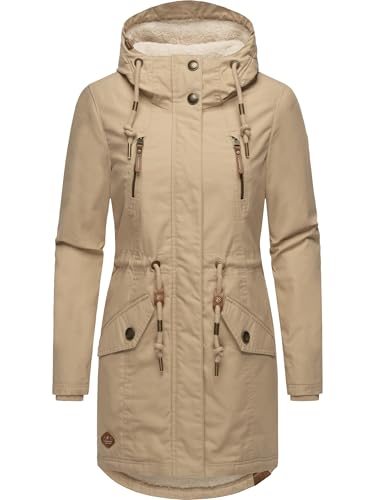 Ragwear Damen Mantel lange warme Winterjacke mit Teddyfell-Kapuze Elsie Intl Taupe24 Gr. M