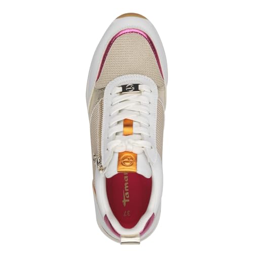 Keilsneaker TAMARIS, Damen, Gr. 38, gold (weiß, goldfarben), Lederimitat, Textil, Schuhe Sneaker, Freizeitschuh, Halbschuh, in schmaler Form, vegane Verarbeitung