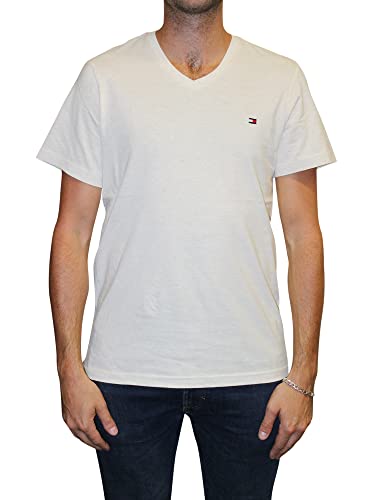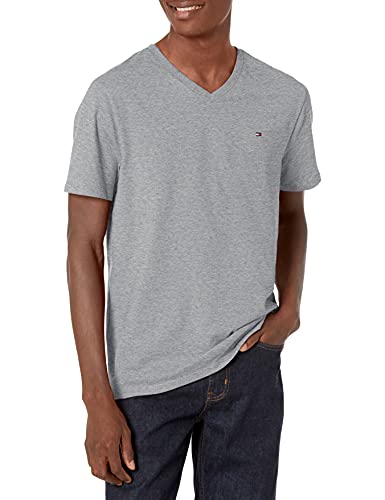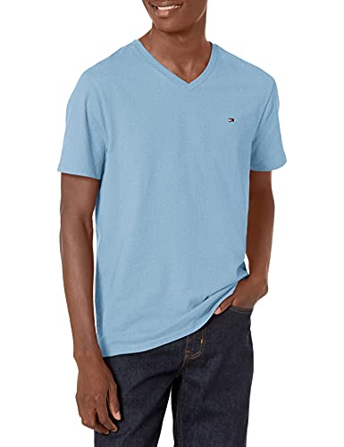 Tommy Hilfiger Herren T-Shirt Kurzarm Essential Tee mit V-Ausschnitt, Blau (Desert Sky), M