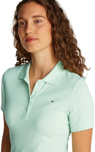 Tommy Hilfiger Damen Poloshirt Kurzarm 1985 Pique Slim Fit, Grün (Opal Green), S