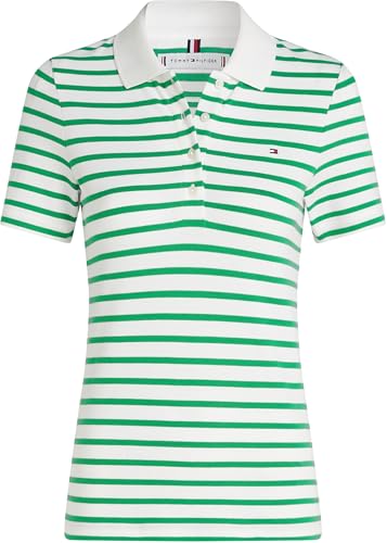 Tommy Hilfiger Damen Poloshirt Kurzarm 1985 Pique Slim Fit, Mehrfarbig (Ecru/Radiant Green STP), XL