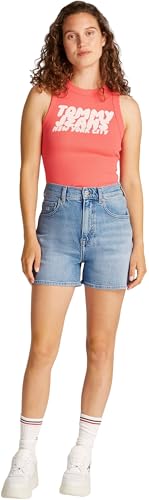 Tommy Jeans Damen Jeans Shorts Mom Short High Waist, Blau (Denim Light), 26W
