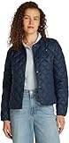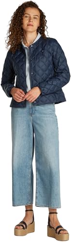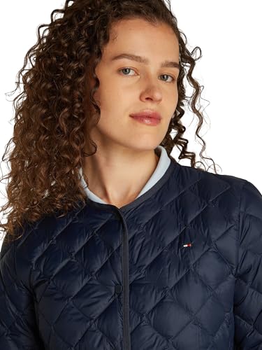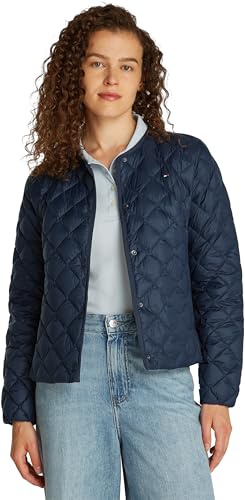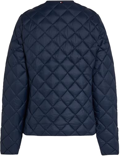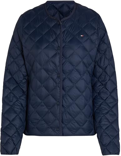 Tommy Hilfiger Damen Steppjacke Down Quilted Collarless mit Knopfleiste, Blau (Dark Night Navy), M