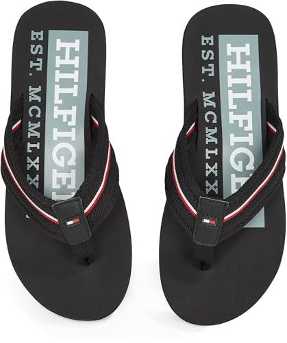 Tommy Hilfiger Herren Flip Flops Corporate Beach Sandal Zehentrenner, Schwarz (Black), 41