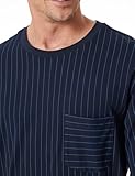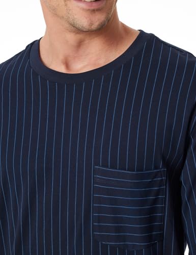 Schlafanzug SCHIESSER Comfort Essentials, Herren, Gr. 54, blau (803, dunkelblau), Single Jersey, Obermaterial: 100% Baumwolle, gestreift, unifarben, regular fit lang, Rundhals, Homewear-Sets, mit gestreiftem Oberteil