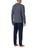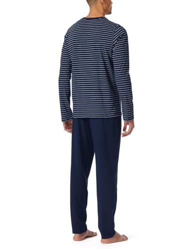Schlafanzug SCHIESSER Casual Essentials, Herren, Gr. 56, blau (801, admiral), Single Jersey, Obermaterial: 100% Baumwolle, gestreift, unifarben, bequem lang, Rundhals, Homewear-Sets Schlafanzug, mit Streifen