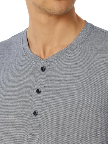 Schlafanzug SCHIESSER Casual Essentials, Herren, Gr. 52, blau (804, nachtblau), Single Jersey, Obermaterial: 100% Baumwolle, unifarben, bequem lang, Rundhals, Homewear-Sets Schlafanzug, mit feinen, gestrickten Ringeln, Knopfleiste, langärmelig