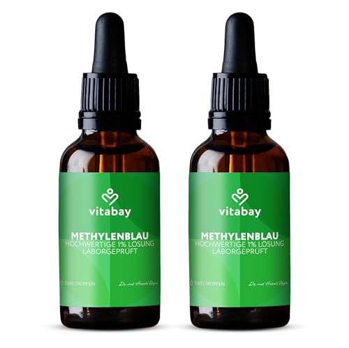 Vitabay Methylenblau hochdosiert Tropfen VEGAN - 2 x 100ml Lösung mit 99,8% Reinheit - Hochdosiert Methylene Blue - Methylene Blau 1% Lösung - Laborgeprüft & in Deutschland hergestellt