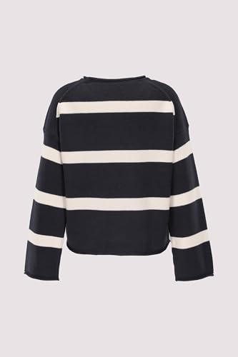 Marc O'Polo Damen Pullover aus Bio-Baumwolle Oversized, Mehrfarbig (Striped/Deep Night Blue), M
