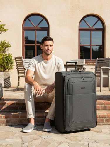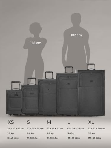 REDOLZ großer 2-Rollen Koffer | Check-in Trolley L Weichschale mit TSA-Schloss | 47 x 28 x 78 cm, 3,4 kg leicht | mit Dehnfalte erweiterbar für Damen & Herren (Essentials 12)