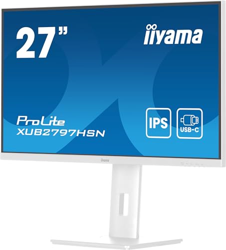 iiyama Prolite XUB2797HSN-W2 68,5cm 27" IPS LED-Monitor Full-HD 100Hz HDMI DP-in/Out DaisyChain USB3.2 USB-C Dock 65W LAN Slim-Line Höhenverstellung Pivot AdaptiveSync weiß