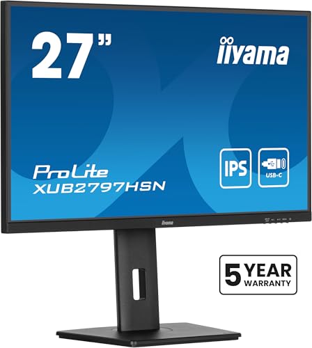 iiyama Prolite XUB2797HSN-B2 68,5cm 27" IPS LED-Monitor Full-HD 100Hz HDMI DP-in/Out DaisyChain USB3.2 USB-C Dock 65W LAN Slim-Line Höhenverstellung Pivot AdaptiveSync schwarz