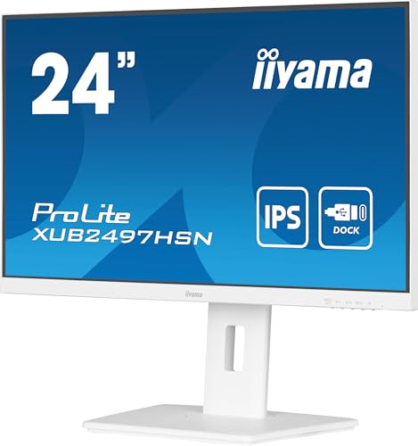 iiyama Prolite XUB2497HSN-W2 60,5cm 23,8" IPS LED-Monitor Full-HD 100Hz HDMI DP-in/Out DaisyChain USB3.2 USB-C Dock 65W LAN Slim-Line Höhenverstellung Pivot Adaptive Sync weiß