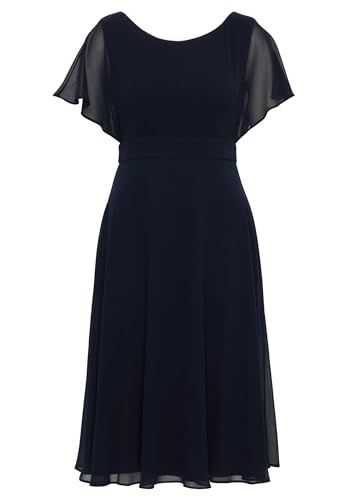 Cocktailkleid VERA MONT Damen Cocktailkleid kurzarm, Damen, Gr. 46, Normalgrößen, blau (night sky), Chiffon, Obermaterial: 100% Polyester recycelt. Futter: 100% Polyester., ausgestellt kurz, Rundhals, Kleider, Raffung