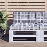 vidaXL Palettenkissen 2-TLG., Palettenpolster für Europaletten, Palettensofa Kissen Indoor Outdoor, Palettenauflage Sitzkissen Rückenkissen, Grau Karomuster Stoff