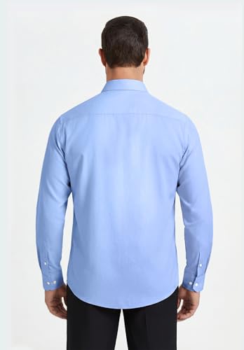 HISDERN Blaues Hemd Herren Langarm Business Hemden für Männer Bügelfrei Regular Fit Herrenhemden Baumwolle Freizeithemd Formelle Himmelblau M
