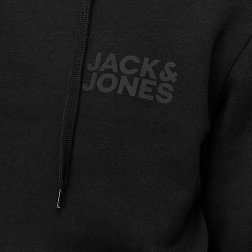 JACK & JONES Herren Hoodie Kapuzensweatshirt JJ Ecorp Logo Sweat Hood, Farbe:Schwarz, Artikel:- Black/small Print, Größe:S