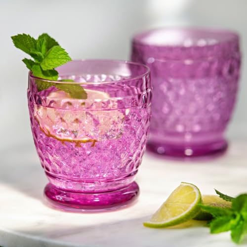 Villeroy & Boch Boston Berry Becher 4er Set, 330 ml, Farbige Trinkgläser mit Facettenmuster, Becher aus Kristallglas für Heiß- und Kaltgetränke, Spülmaschinengeeignet, Rosa