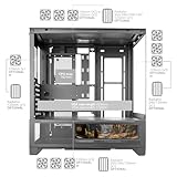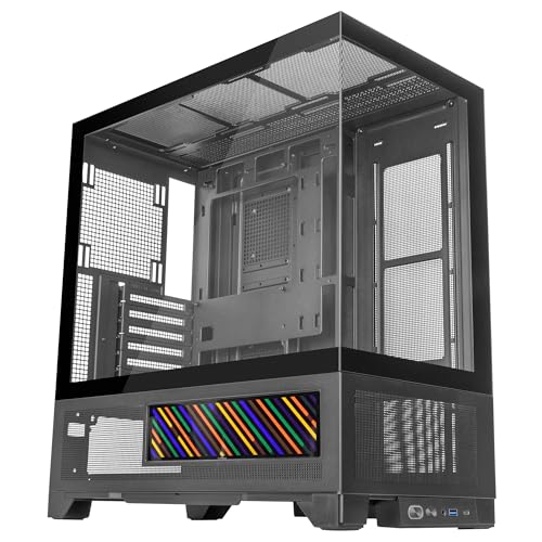 Mars Gaming MC-LCDX, Gaming Gehäuse ATX, IPS Bildschirm 9.16" HDMI Anschluss, Durchgehendes Gehärtetes Glas, Unteres Full Mesh Panel, Doppelkammersystem, Unterstützung Wasserkühlung bis 360mm, Schwarz