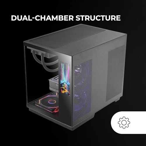 Mars Gaming MC-Mirage, Gaming Gehäuse ATX, Anpassbares 7,2” LCD IPS Display, Durchgehendes Front- und Seitenteil aus Gehärtetem Glas, Doppelkammersystem, Wasserkühlung bis 360mm, Schwarz