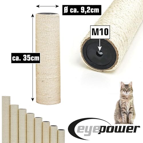 eyepower 35 cm Pfotenfreund Ø 9,2 cm: M10 Sisalstamm für Kratzbaum Ersatzstamm - 100% Natur Sisal Stamm Kratzsäule - Kratzstamm für Katzen Stabil - Katzenkratzbaum Ersatzteile Sisalstämme Sisalsäulen