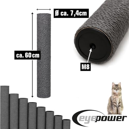eyepower 60 cm Pfotenfreund Ø 7,4 cm: M8 Sisalstamm für Kratzbaum - Ersatzstamm Grau - 100% Sisal Stamm Kratzsäule - Kratzstamm für Katzen Stabil - Katzenkratzbaum Ersatzteile Sisalstämme Sisalsäulen
