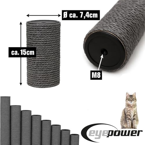 eyepower 15 cm Pfotenfreund Ø 7,4 cm: M8 Sisalstamm für Kratzbaum - Ersatzstamm Grau - 100% Sisal Stamm Kratzsäule - Kratzstamm für Katzen Stabil - Katzenkratzbaum Ersatzteile Sisalstämme Sisalsäulen