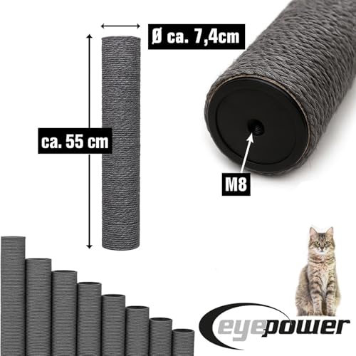 eyepower 55 cm Sisalstamm für Kratzbaum Ersatzstamm M8 - Ø 7,4 cm Sisalsäule Kratzstamm