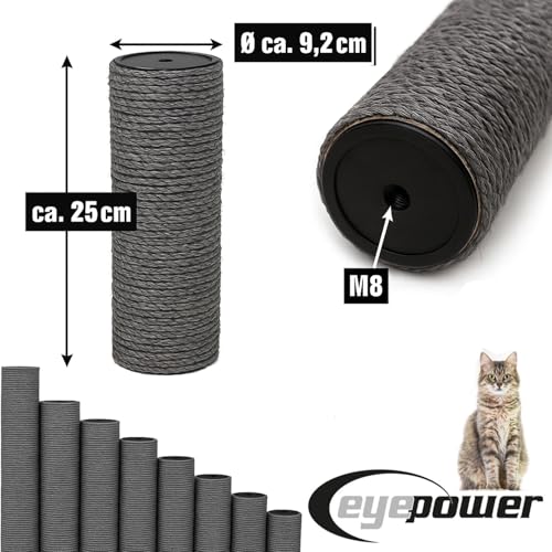 eyepower 25 cm Pfotenfreund Ø 9,2 cm: M8 Sisalstamm für Kratzbaum - Ersatzstamm Grau - 100% Sisal Stamm Kratzsäule - Kratzstamm für Katzen Stabil - Katzenkratzbaum Ersatzteile Sisalstämme Sisalsäulen