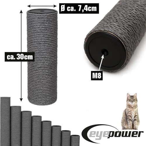 eyepower 30 cm Pfotenfreund Ø 7,4 cm: M8 Sisalstamm für Kratzbaum - Ersatzstamm Grau - 100% Sisal Stamm Kratzsäule - Kratzstamm für Katzen Stabil - Katzenkratzbaum Ersatzteile Sisalstämme Sisalsäulen