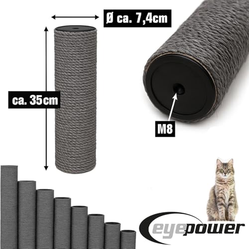 eyepower 35 cm Pfotenfreund Ø 7,4 cm: M8 Sisalstamm für Kratzbaum - Ersatzstamm Grau - 100% Sisal Stamm Kratzsäule - Kratzstamm für Katzen Stabil - Katzenkratzbaum Ersatzteile Sisalstämme Sisalsäulen