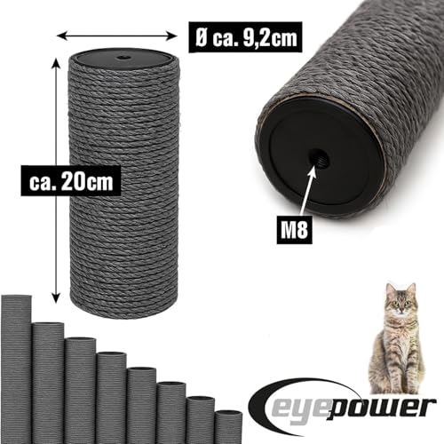 eyepower 20 cm Pfotenfreund Ø 9,2 cm: M8 Sisalstamm für Kratzbaum - Ersatzstamm Grau - 100% Sisal Stamm Kratzsäule - Kratzstamm für Katzen Stabil - Katzenkratzbaum Ersatzteile Sisalstämme Sisalsäulen