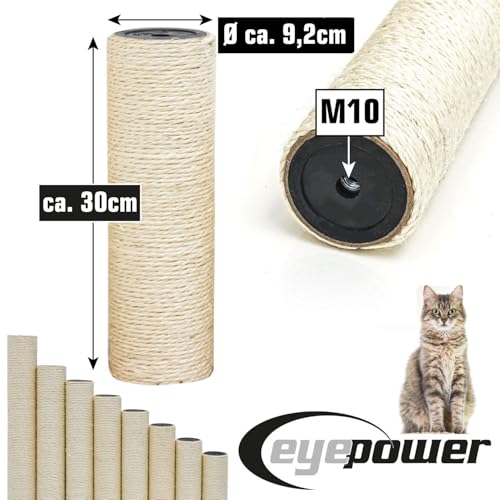 eyepower 30 cm Pfotenfreund Ø 9,2 cm: M10 Sisalstamm für Kratzbaum Ersatzstamm - 100% Natur Sisal Stamm Kratzsäule - Kratzstamm für Katzen Stabil - Katzenkratzbaum Ersatzteile Sisalstämme Sisalsäulen