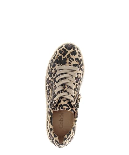 Plateausneaker GABOR, Damen, Gr. 39, braun (leo), Ziegenveloursleder, animal-print, Schuhe, Freizeitschuh, Halbschuh, Schnürschuh im trendigen Leo-Look