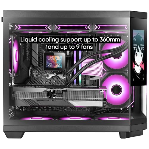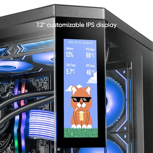 Mars Gaming MC-3TCORELCDM Micro-ATX Gaming-Gehäuse, anpassbarer 7,2" IPS-Bildschirm, dreifaches gehärtetes Glas, Doppelkammerstruktur, Unterstützung für Flüssigkeitskühlung bis 360mm, Schwarz