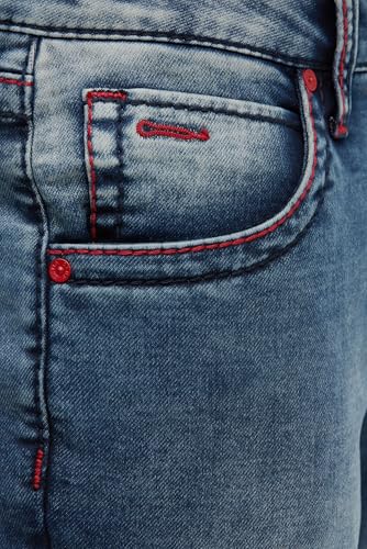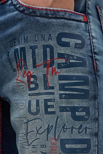 Camp David NI:CO Herren Jeans Regular Fit Light Vintage Print Jogg | gerades Bein, mittlere Leibhöhe, Five-Pocket, rote Kontrastnähte, Logo-Print, farbige Innenseite am Turn-up 32, 32