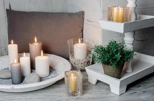 Sovie CANDLES Refill Kerzen Transparent/Klar 12 Stück - Kerze in Kunststoff-Hülle - ca. 24 Stunden Brenndauer - Kerzen Deko Innen & Außen - Schützt Glas & Dekoration